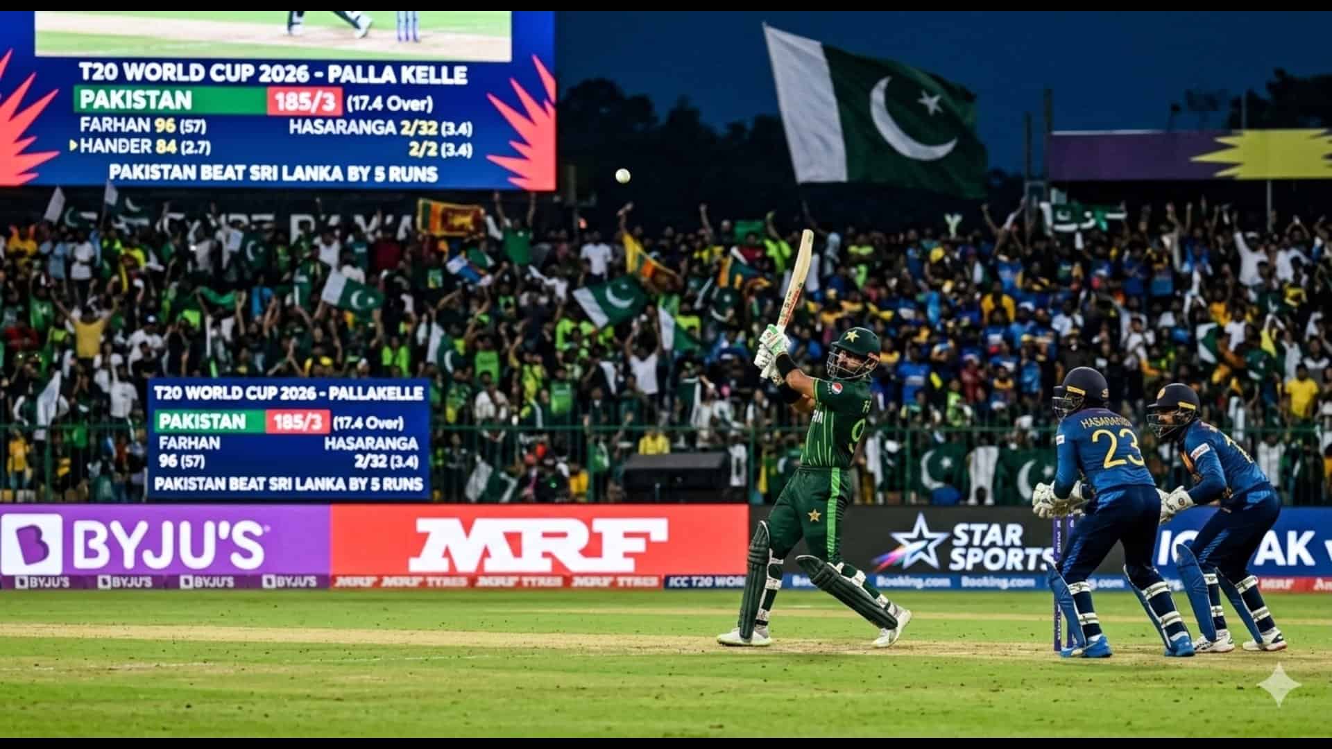 अंतिम ओवर में श्रीलंका को 28 रन चाहिए थे। दासुन शनाका ने शाहीन अफरीदी को 3 छक्के और 1 चौका मारा, लेकिन अंत में उनकी टीम 5 रन पीछे रह गई।